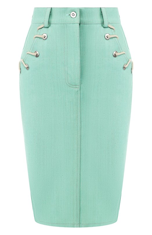 Товар можно купить по цене 22 450 руб. c доставкой на сайте , доступные размеры уточняйте на сайте магазина. В весенне-летней коллекции 2019 года Андрей Артемов обновил юбку-карандаш из мягкого денима: боковые карманы и шлица нежно-мятного изделия украшены люверсами со шнуровкой. Попробуйте дополнить модель с комфортной завышенной посадкой будто созданным для нее кроп-топом в тон. Образ поддержат песочные босоножки на шпильке и плетеный клатч. Модель представляет из себя: SK016APS19. Цвет Зеленый. Материал Хлопок: 100%;.